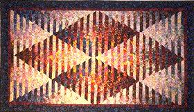 C. "Tribute" 70" x 41 1/2", by Deanna Spingola 1997. I took a class from Caryl Bryer Fallert and made a very small "Illusions" quilt then decided to make a larger one using watercolor style fabrics. Foundation pieced.