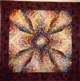 B. "Vertigo" 43" x 43", by Deanna Spingola 1995/6. Displayed at AQS, Paducah 1996. Foundation pieced. This quilt won first place in the NQA 1996 in their theme category - Watercolor Quilts.